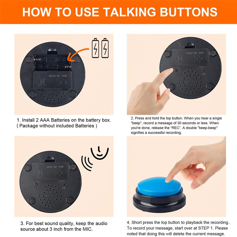 Great for Communication: Used as a teacher-student interactive tool, game tool. Leave messages for family members, roommates. Pet training tools, teach your dog communicate via button, like "Outside", "Mealtime", "Bedtime", "Love You" and more.