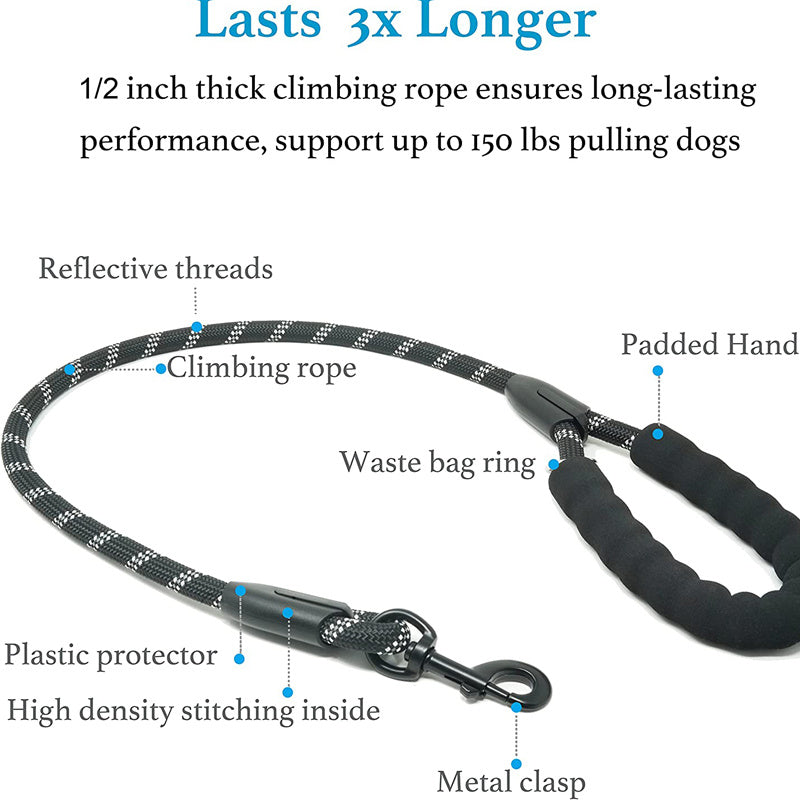 Heavy Duty Design: Climbing rope and tightly woven nylon bungee extension make the dog leash more durable but lightweight, heavy duty and easy to clean.