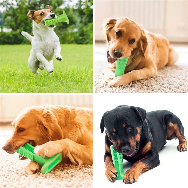 You can put food on a toothbrush stick to attract a dog's pet chewing stick.