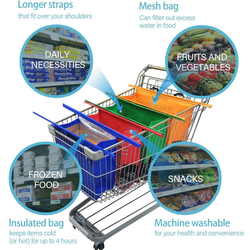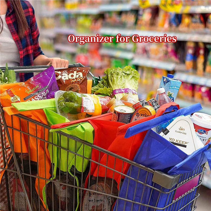 LIGHTWEIGHT, COMPACT, AND EASY TO PACK AWAY:Â Our grocery bags are ideal for those who are always on the move. Our cart bags fully detach and fold up as one, which is easy to fit in the back of a shopping cart or car, it really is the perfect solution for busy grocery shoppers.