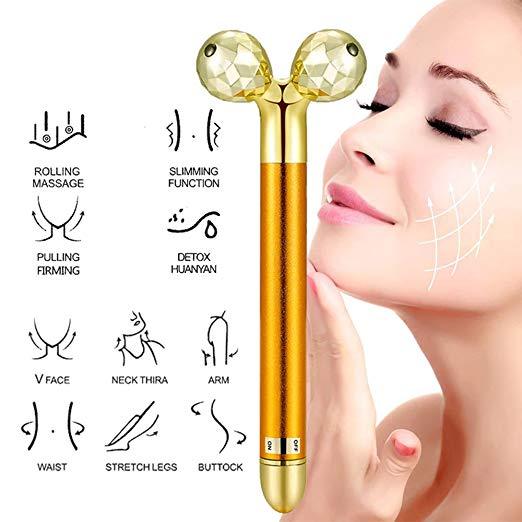 The 3D Roller Face Massager designed with 24K gold-plated germanium Y-Bar that create an antimicrobial surface for safe touching with your skin. Increase Blood Circulation, Reduce Tightness, and Rejuvenate your Skin.