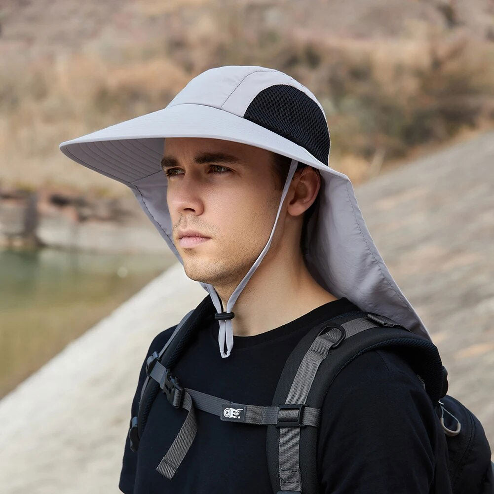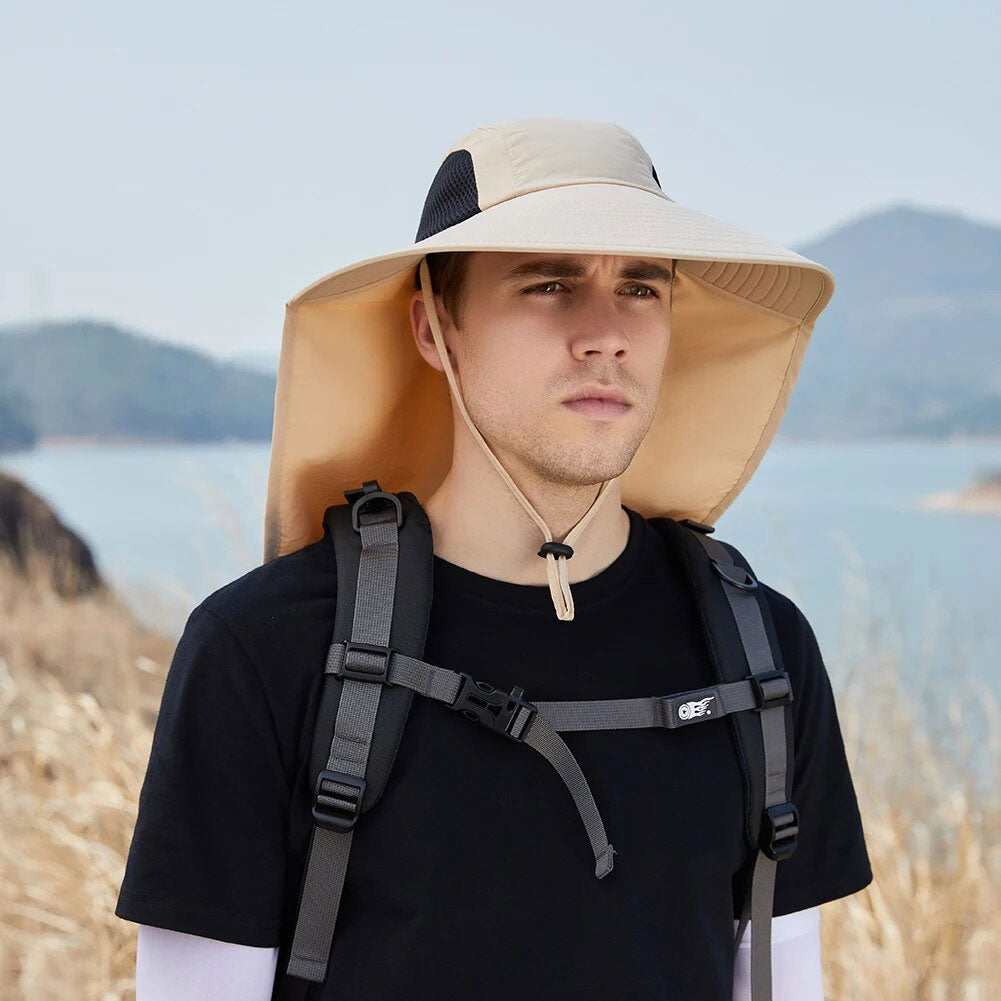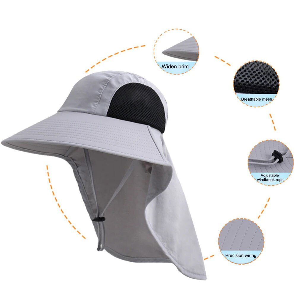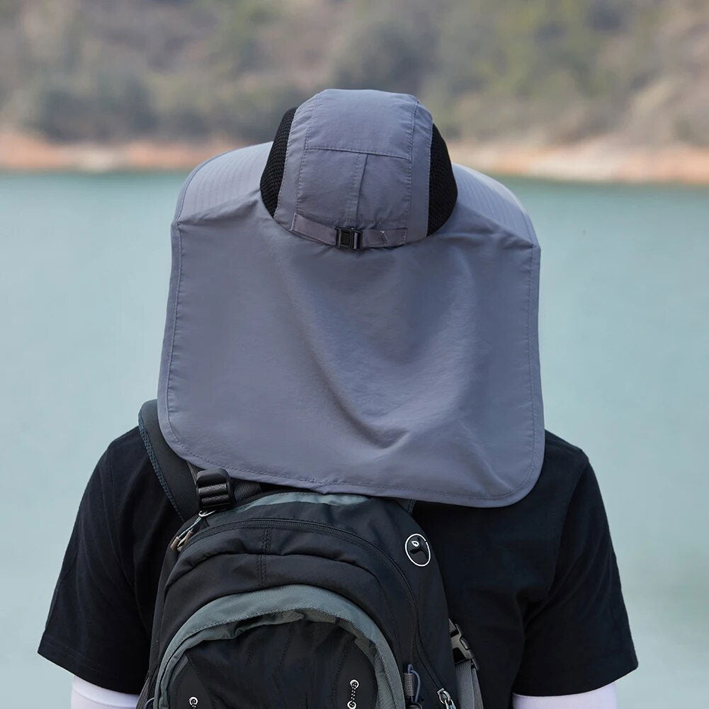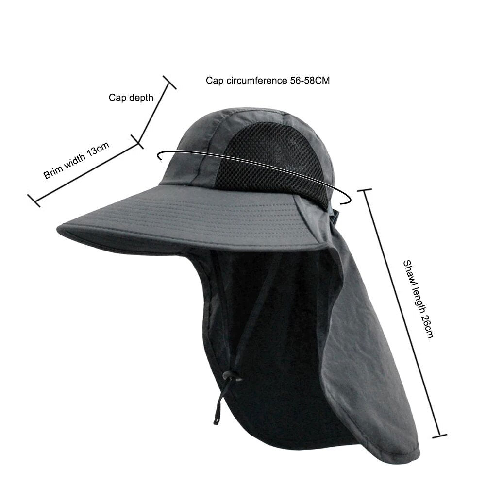 Nylon Fishing Hiking Cap Breathable Sun Protection Face Cap with Windbreak Rope Portable Foldable Comforable for Outdoor Sport