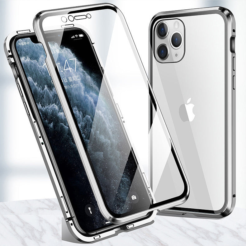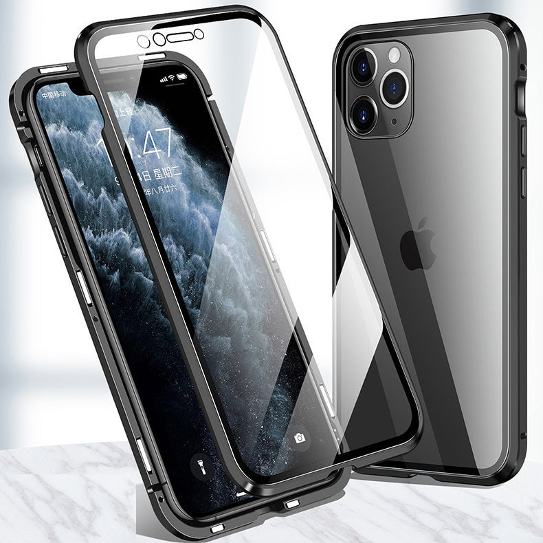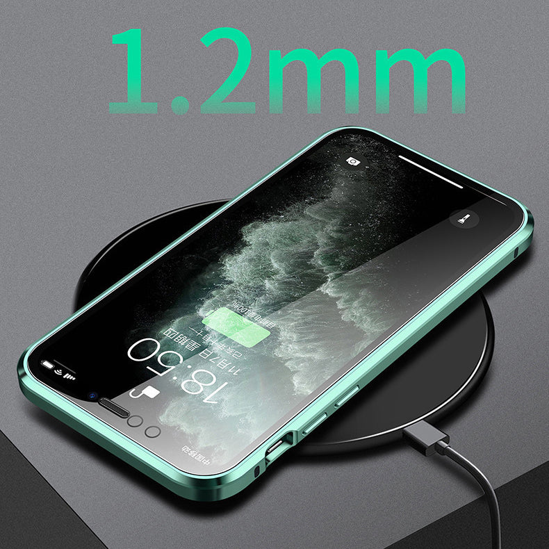 Upgraded 360 degree full protection design. Composition of multi-point magnetic metal frame + front glass plate + back glass plate.