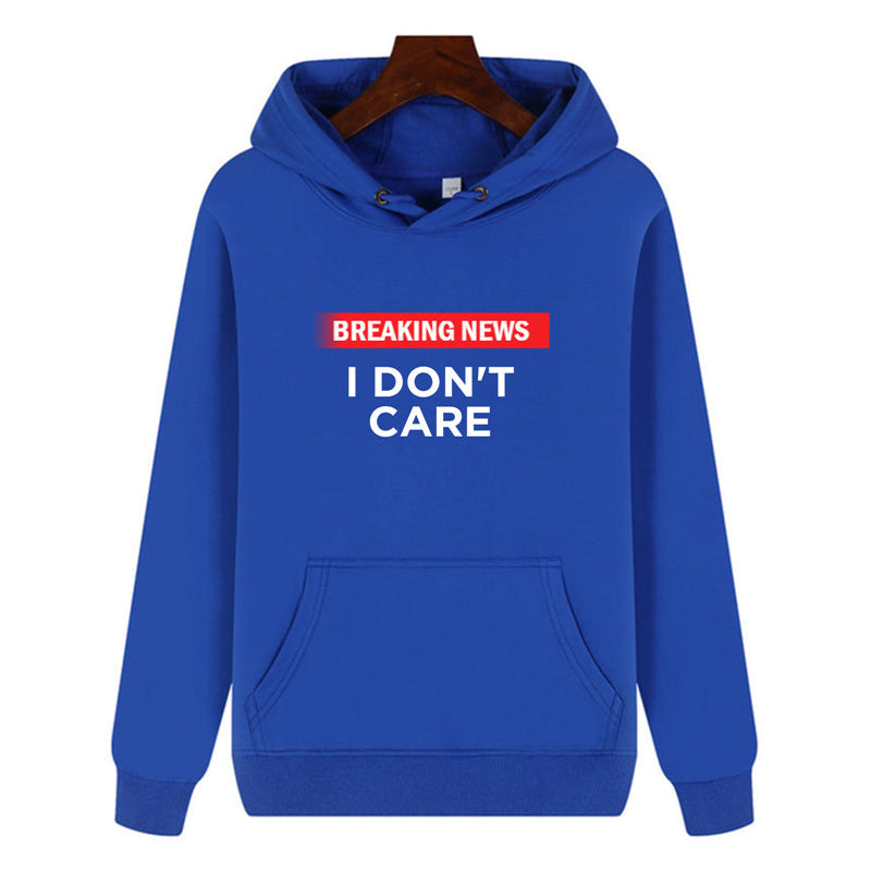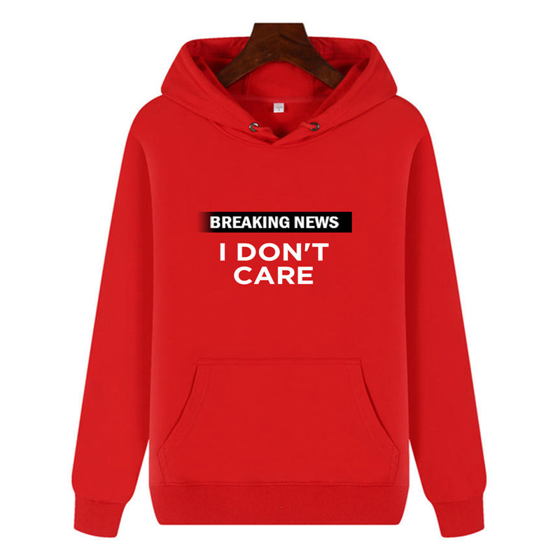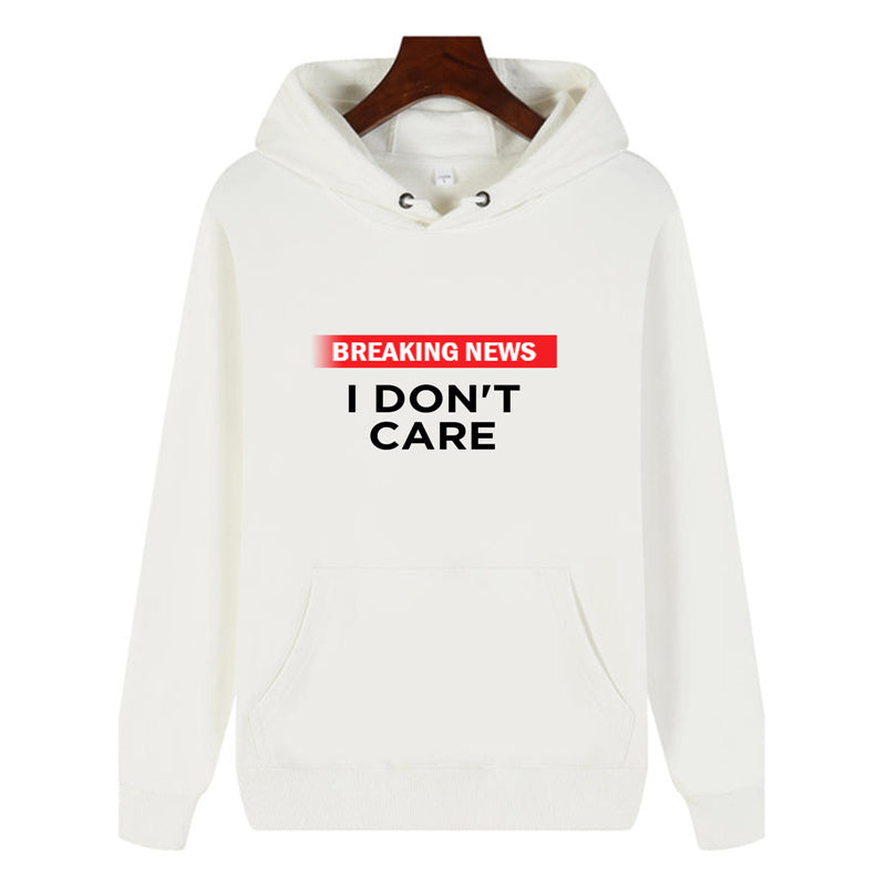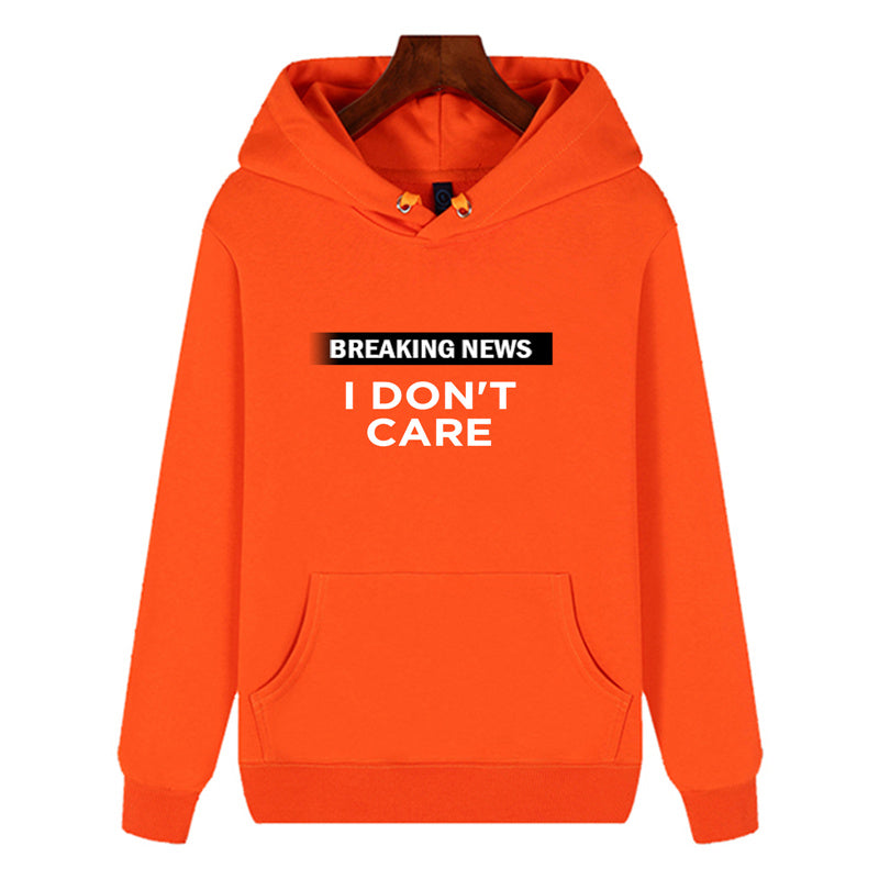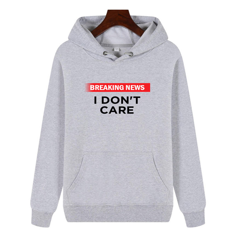 Unisex Thick Hoodies Breaking News I Don't Care Funny Print Spring Autumn Winter Pullover Streetwear Hip Hop Jumper Hooded Tops Sweatshirt