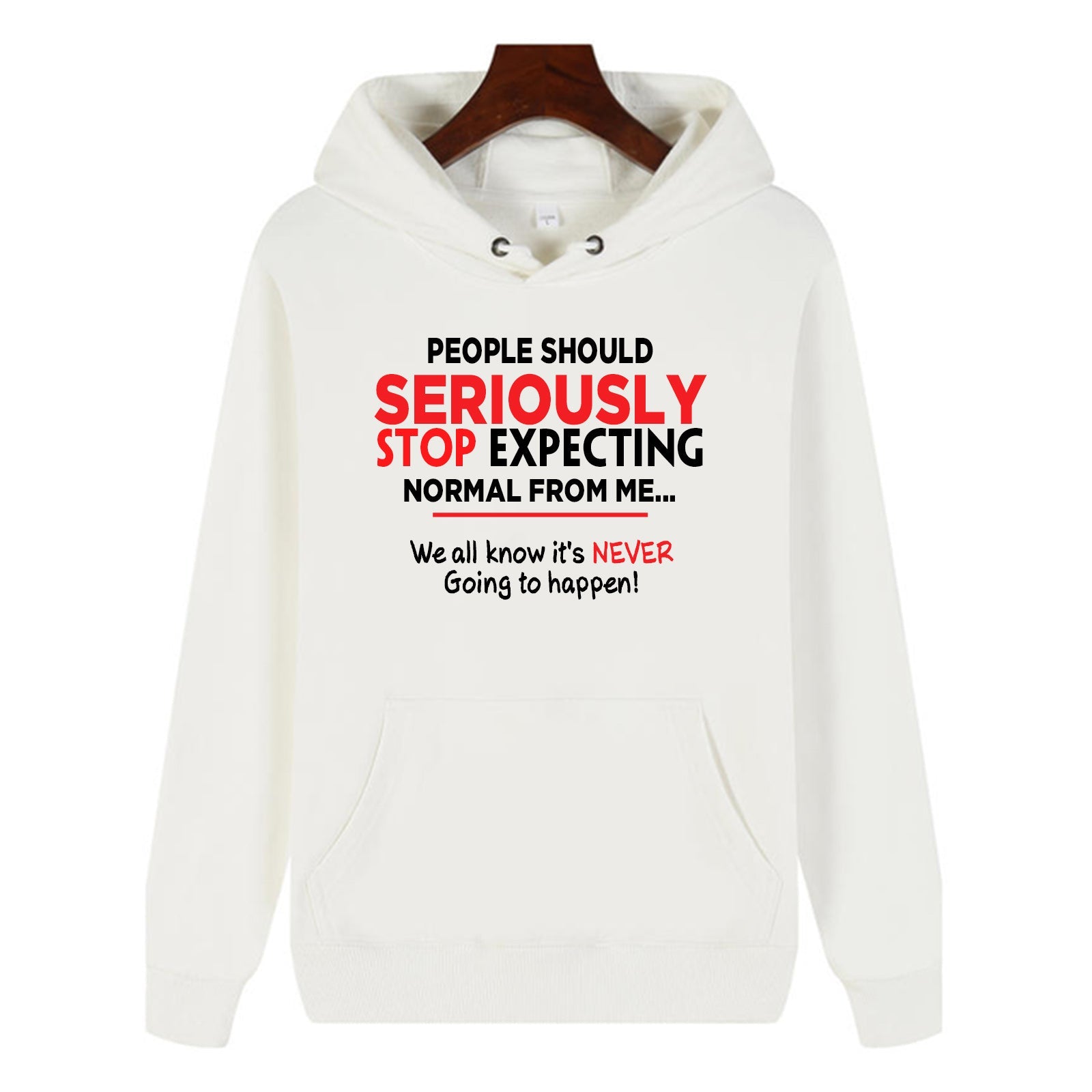 Unisex Thick Hoodies People Should Seriously Stop Expecting Normal From Me...We all know it's NEVER Going to happen!  Funny Print Spring Autumn Winter Pullover Streetwear Hip Hop Jumper Hooded Tops Sweatshirt