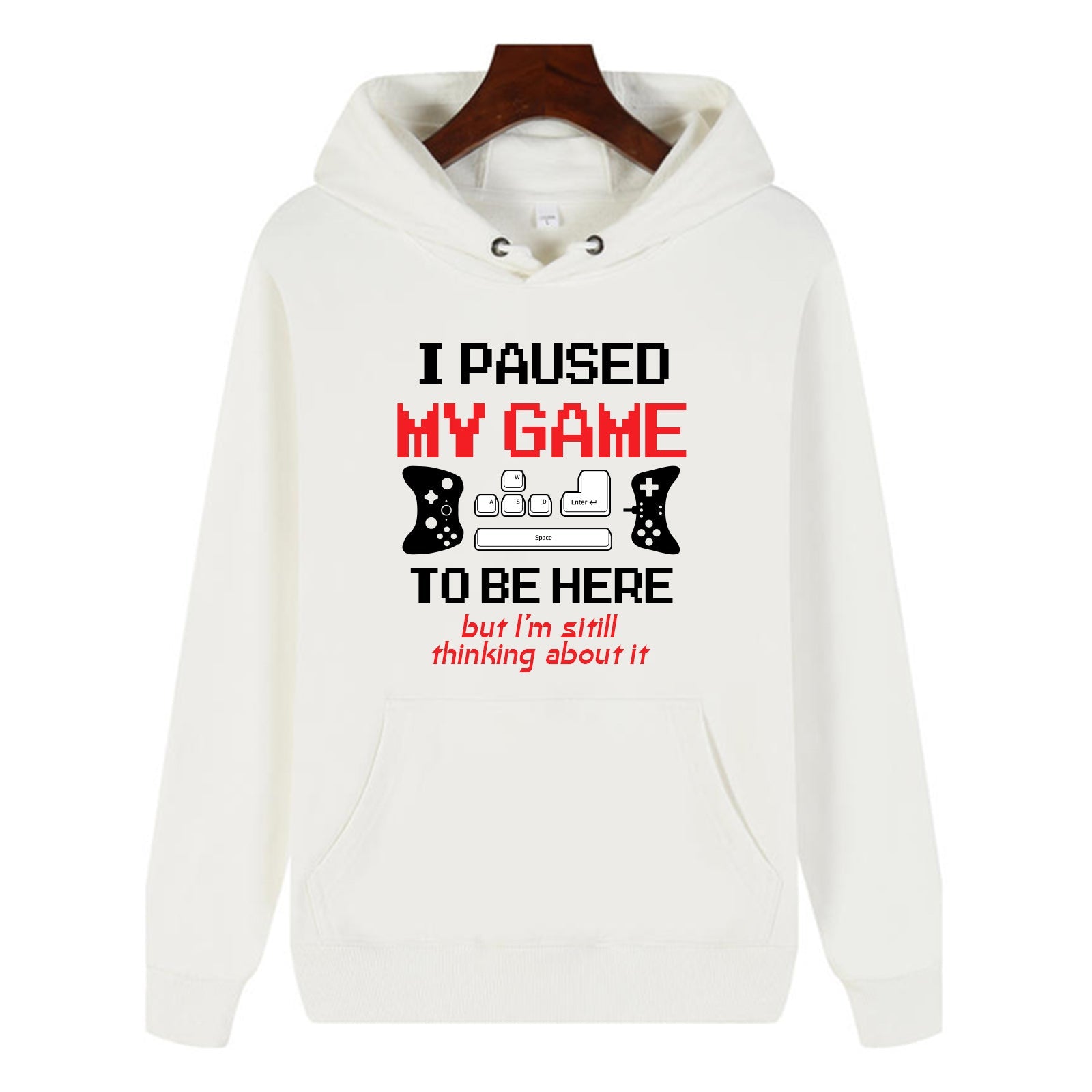 Unisex Oversized Hoodies I PAUSED MY GAME TO BE HERE, but I'm still thinking about it Funny Print Spring Autumn Winter Pullover Streetwear Hip Hop Jumper Hooded Tops Sweatshirt