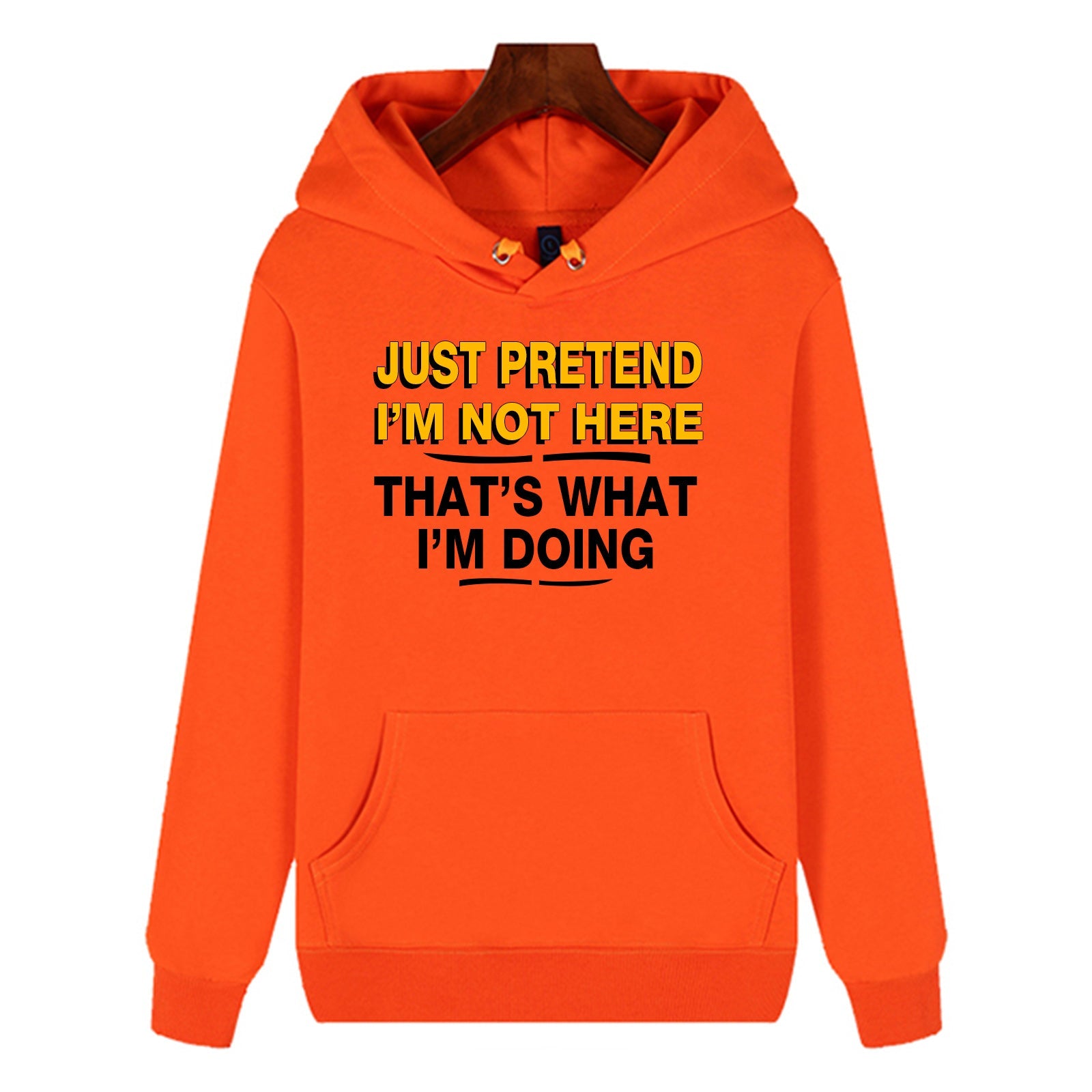 Unisex Thick Hoodies JUST PRETEND I'M NOT HERE,THAT'S WHAT I'M DOING.  Funny Print Spring Autumn Winter Pullover Streetwear Hip Hop Jumper Hooded Tops Sweatshirt