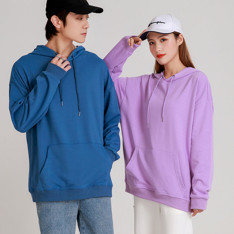 Cozy and comfortable pullover hoodie with front pocket and drawcords.