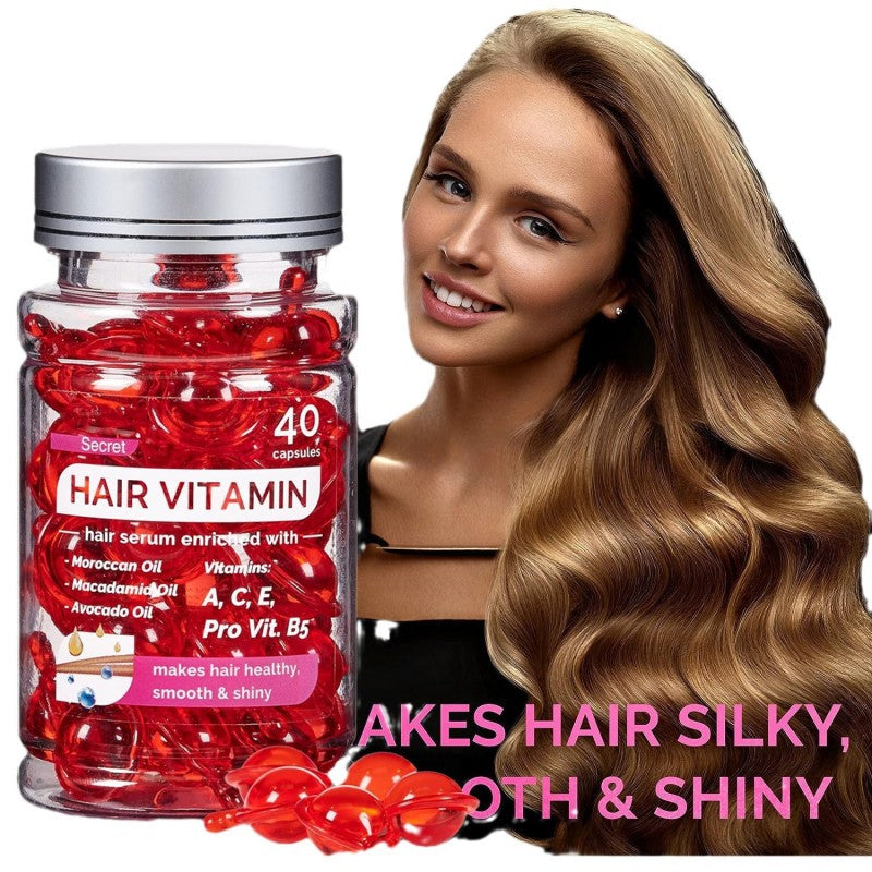 Each bottle of hair vitamins capsules contains 40 capsules,enriched with avocado, macadamia, and argan oil, Vitamins A,C,E and Pro B5 in essential oils nourish the scalp and strengthen hair from root to tip for healthier looking hair.