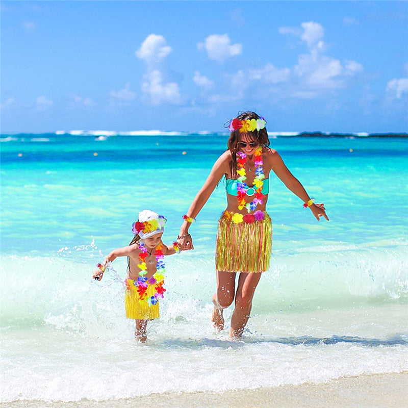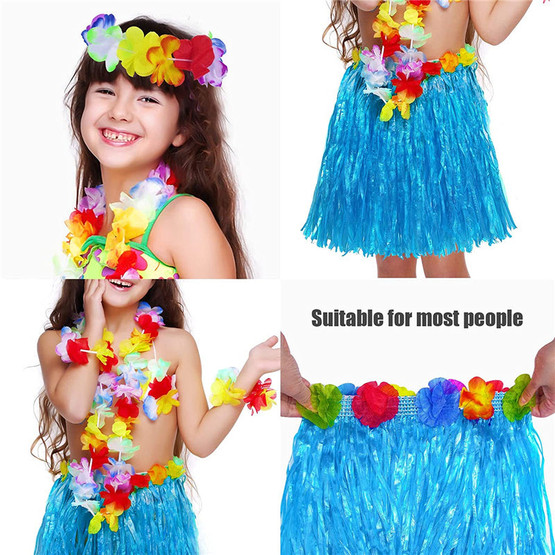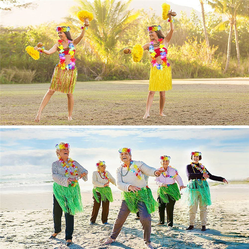 ELASTIC WITH SOFT MATERIAL: The beautiful hawaiian costume is made of high quality polyester fabric, soft to your skin, friendly to kids and adults. More, the high elastic of our skirt is suit for most bodily forms of people.