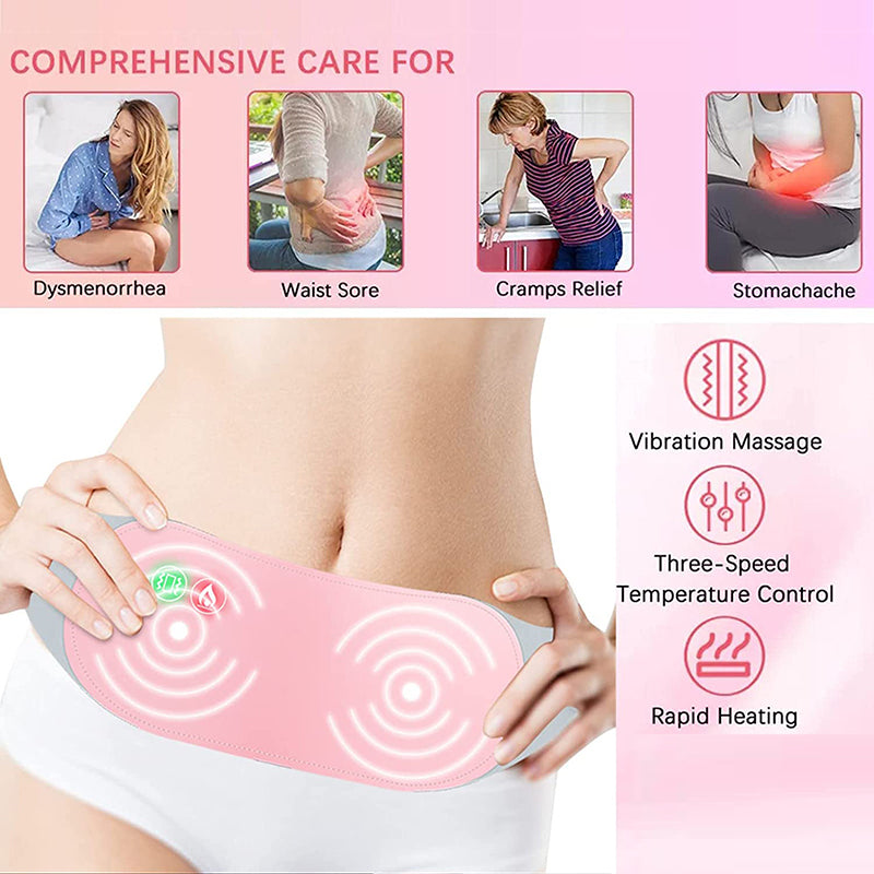 Adjustable Massage and Heating: 3 levels of hot compress + 3 levels of vibration massage, the combination of acupoint massage and hot compress therapy can effectively warm your abdomen and waist, relieve fatigue and soreness.