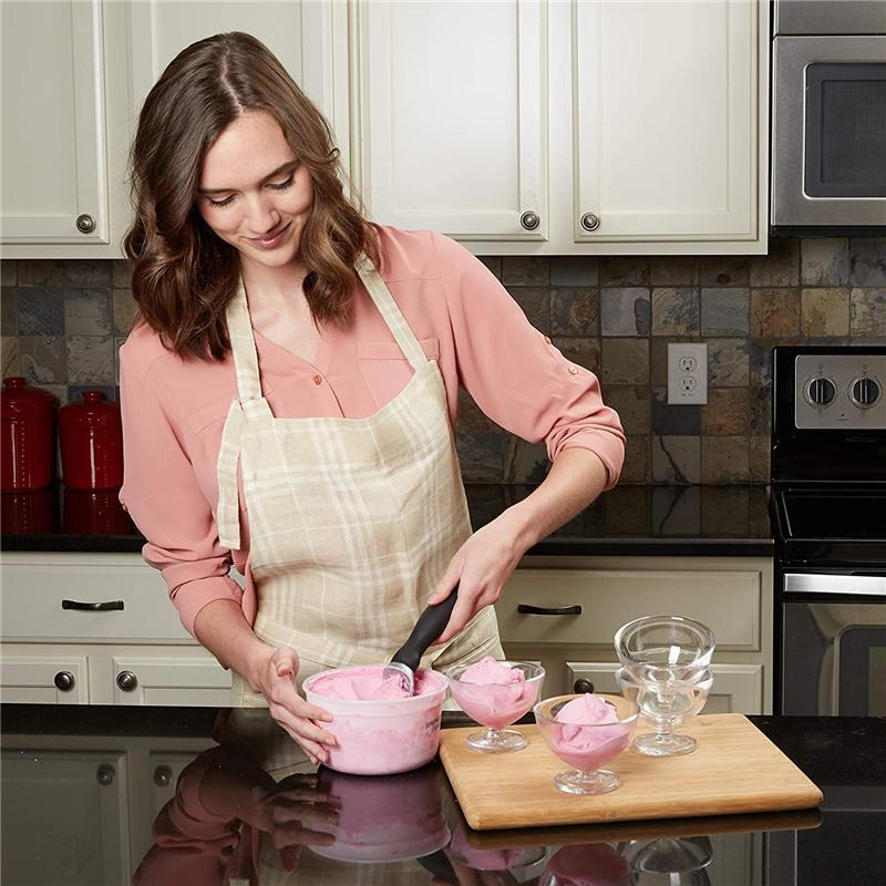 Comfortable And Easy To Use- Rubber handle provides a perfect non-slip grip while scooping.The scoop ice cream allows for a firm grip while having a soft sense of touch.