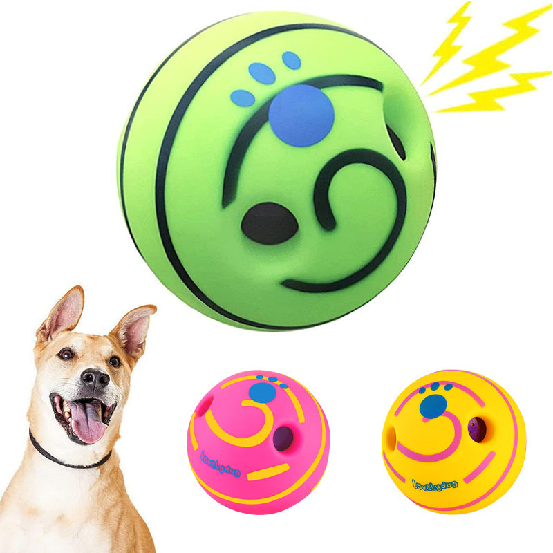 A Ball that Makes Sounds-- The dog can push the Wobble Giggle ball gently with its nose. The Wiggle Ball Dog Toy Funny Sounds comes with three tubes that make fun sounds to get your dog's attention when the ball is rolling. No batteries are needed.