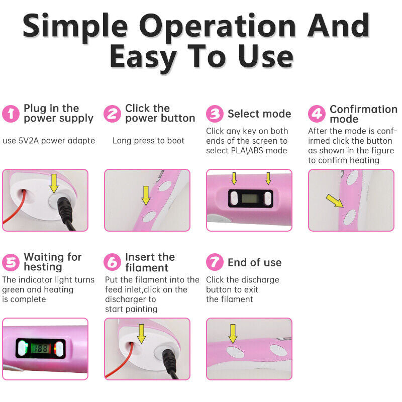 Lightweight and Portable: The compact and lightweight design of the 3D printing pen ensures that kids can use it comfortably for extended periods and take it wherever they go.