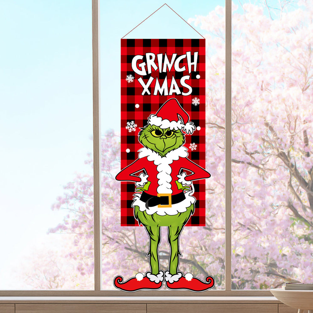 Merry Christmas Window Sign Banners Grinch Hanging Feet Doll Hanging Flag