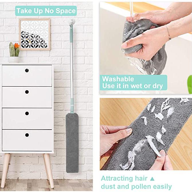 Long handle mop sweep cleaning dust brush, telescopic microfiber duster household for sofa bed furniture bottom gap dust