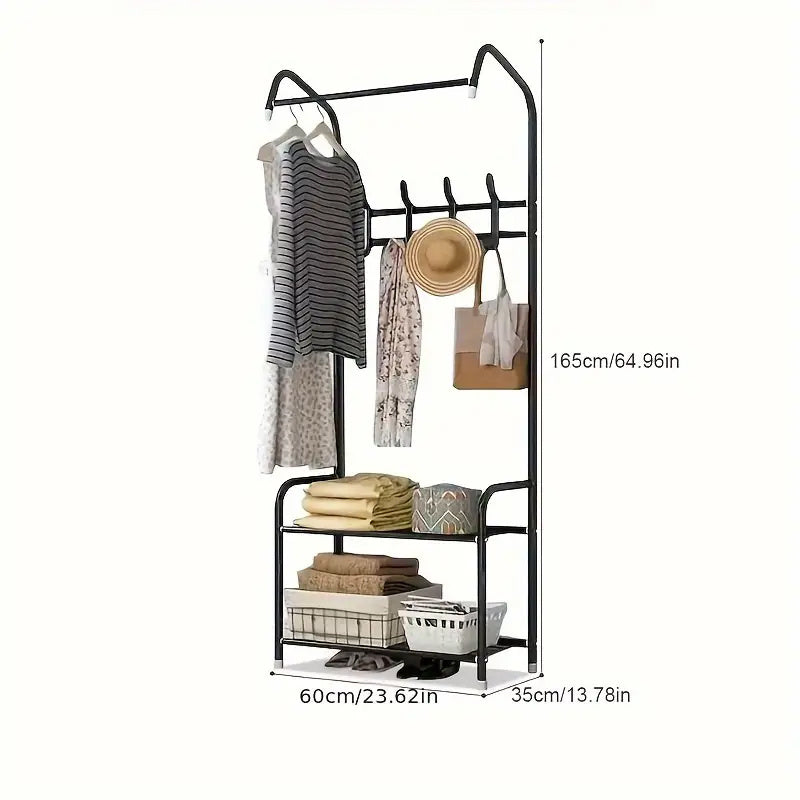 Multifunctional Clothes and Shoe Rack provides organized storage for clothing, shoes, and accessories, perfect for maximizing space.