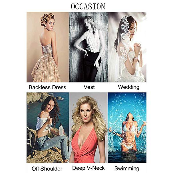 A Must-Have Backless Bra: This bra is perfect for various styles, including strapless, backless, off shoulder, low cut, plunging, halter, crisscross, retro dress, and beach wraps. It's suitable for formal events, weddings, proms, parties, vacations, and casual occasions.