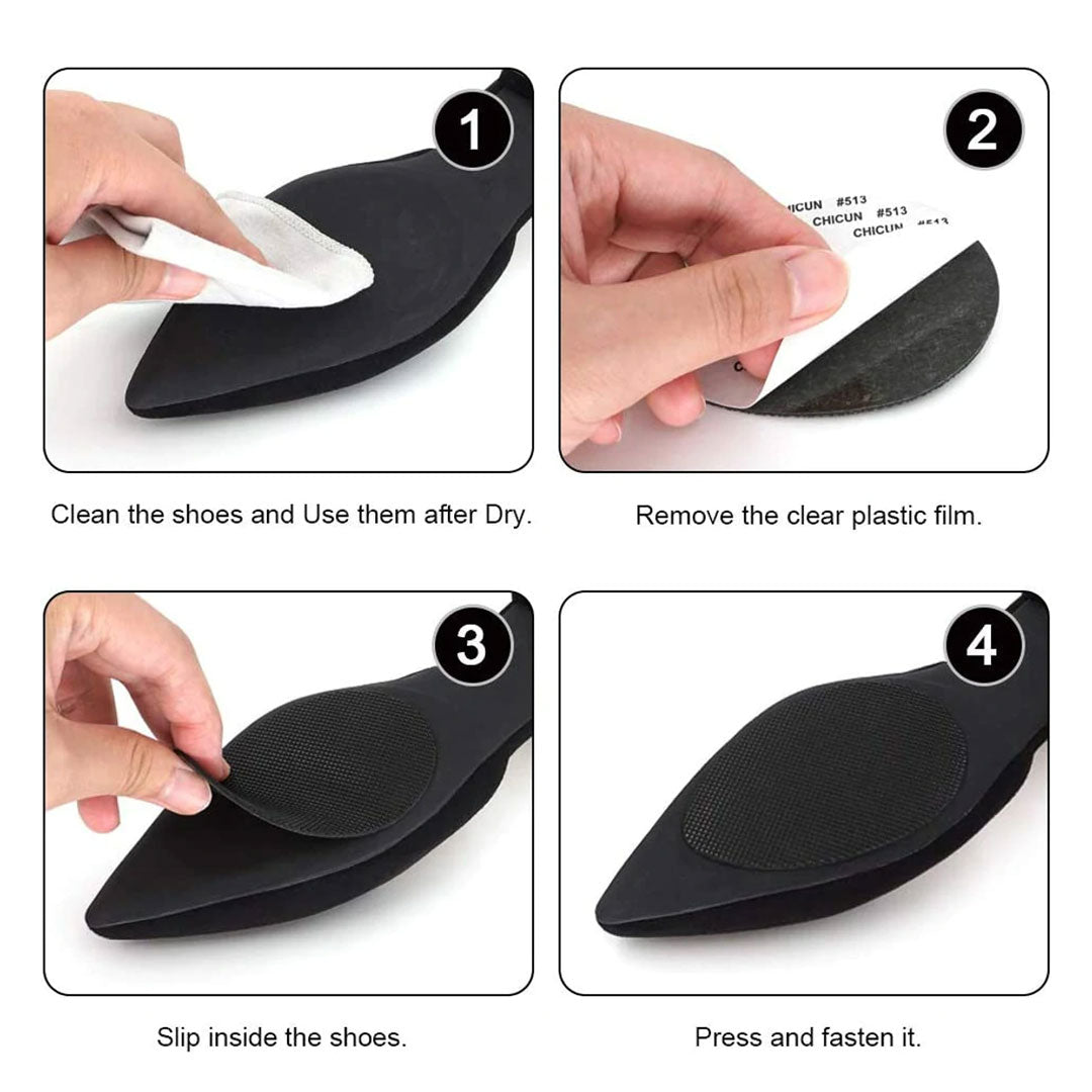 Easy to use, just peel off and place the adhesive pad on the sole and press firmly
