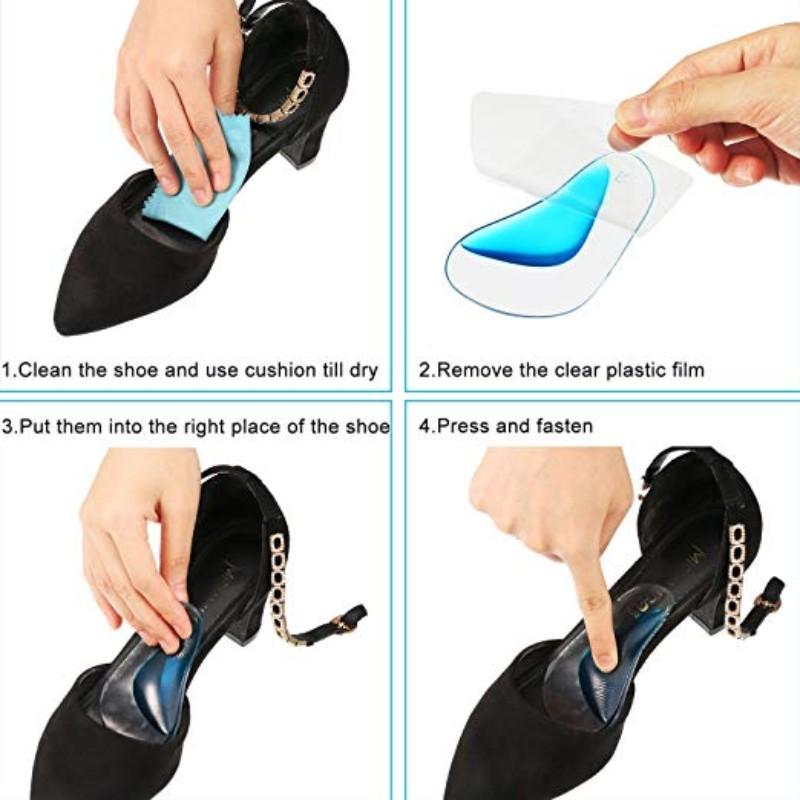 It is self-adhesive with strong stickiness, they can stay firmly in place, suitable for flats, sandals, high heels, dress shoes and other shoes with smooth leather insoles.