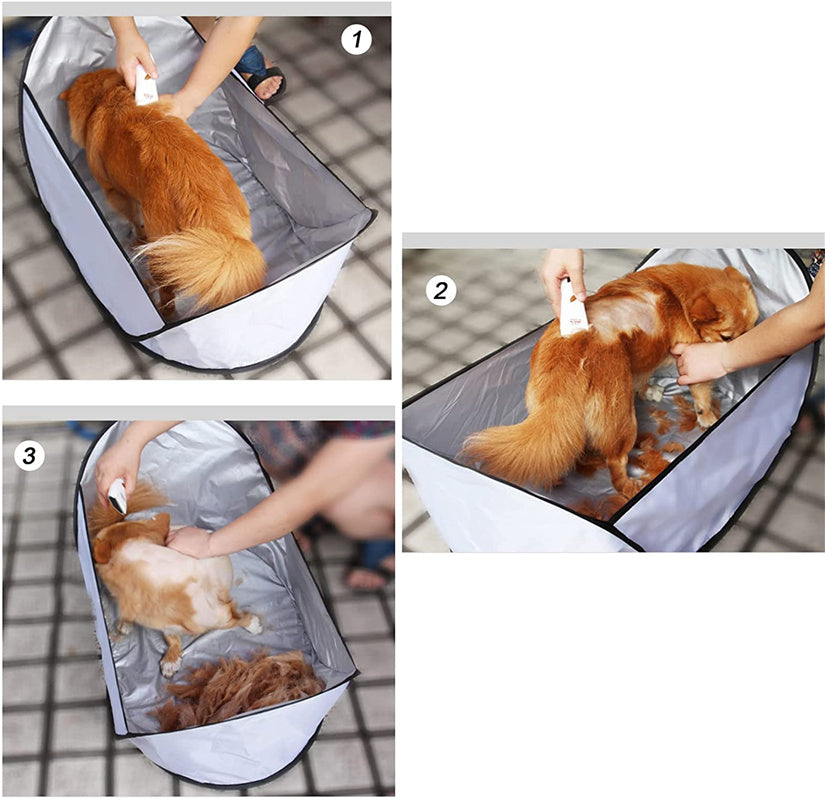Hair Collection- With this pet shearing bib, you can trim the hair of your pets at home, and it can prevent pet hair from falling to the ground, you don't have to worry about hair flying everywhere.
