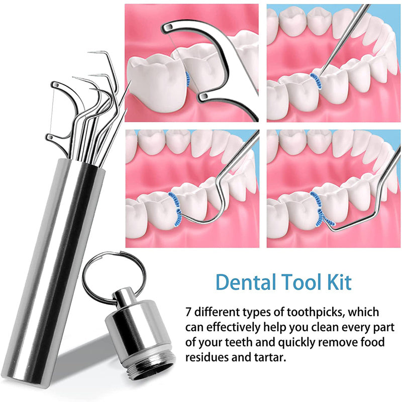 Material: Our 7-in- toothpicks set are made of stainless steel , providing nice durability and anti-corrosion performance to keeping your teeth clean.