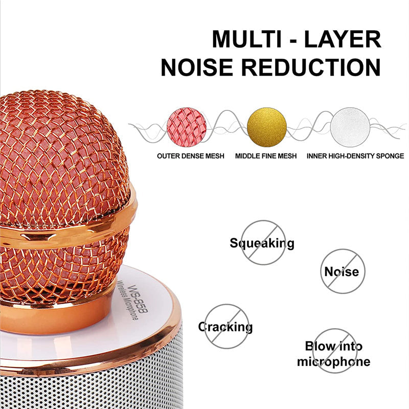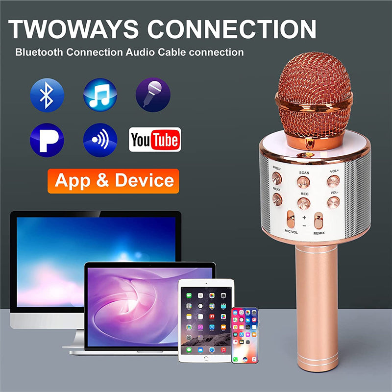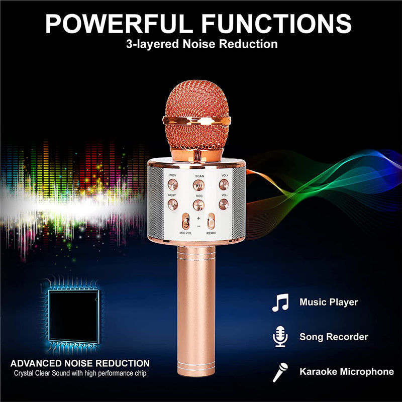 Bluetooth & Karaoke Combo: Works as both a Bluetooth microphone and a karaoke machine, perfect for music lovers. Sing and record anytime, anywhere.