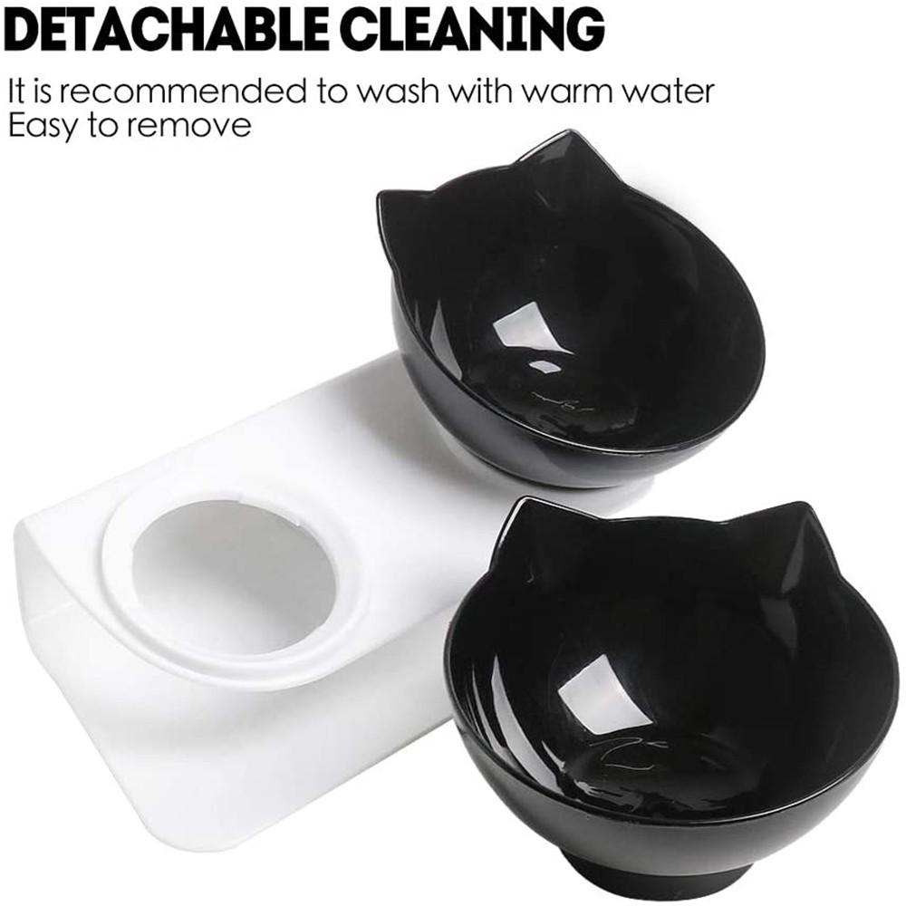 Provides the most comfortable angle for your cat to enjoy every meal, as well as protecting their neck, spine and cervical vertebrae. Their whiskers won’t touch and they’ll have easier access to their meals.
