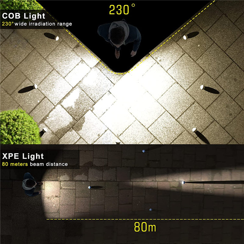 Wide angle view: 230-degree field of view with no dead angles in the front. Can provide long-distance illumination up to 80m with side beam.