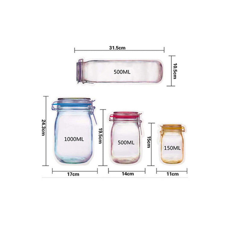 Mason Jar Shape Design- The stylish reusable jar bags with Transparent design makes it easier for you to browse internal items. The mason jar shaped will be a great decoration for the kitchen or freezer.