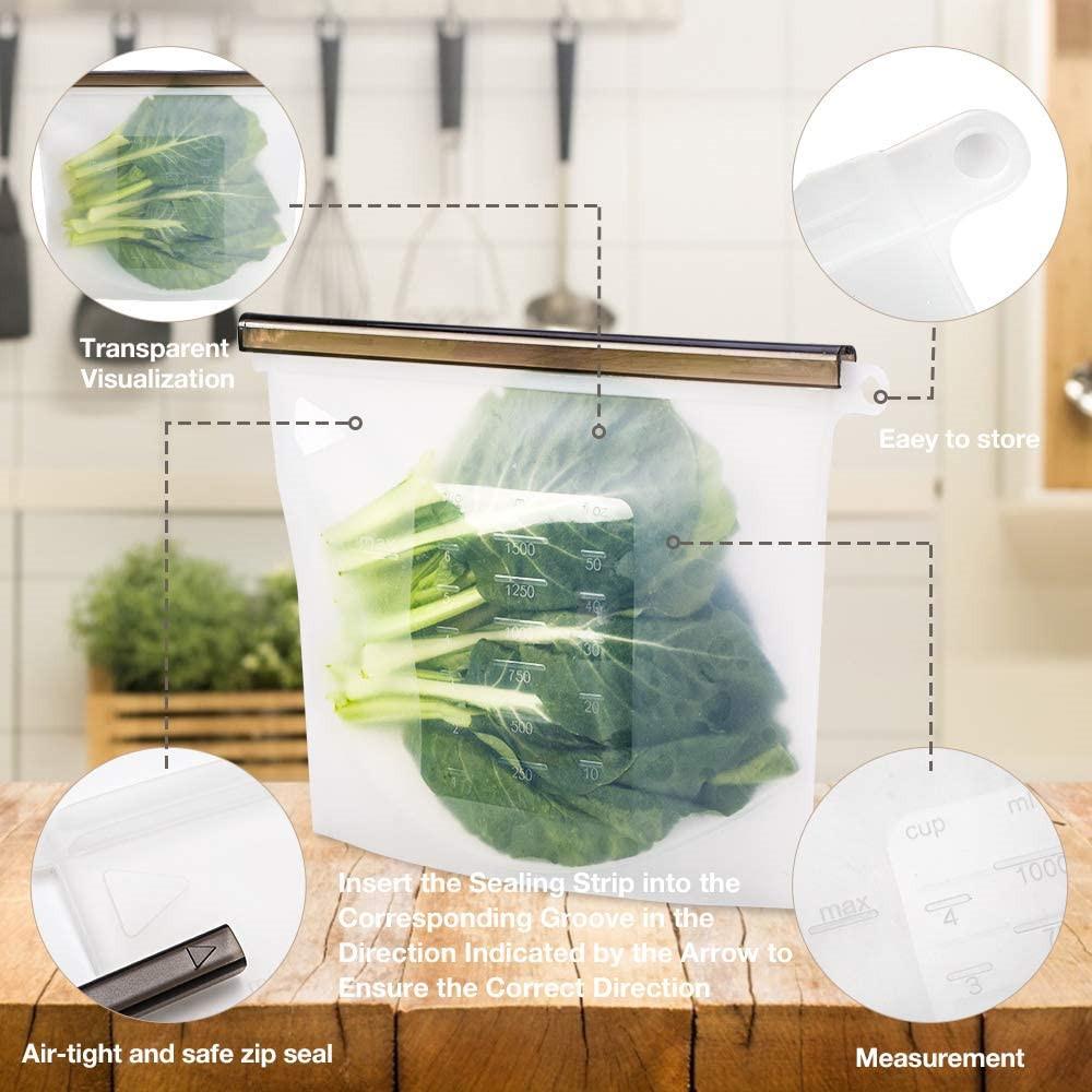 Increase the shelf life of food or liquids by storing them in these airtight silicone food bags