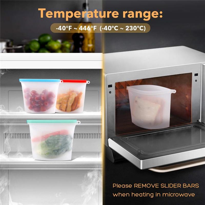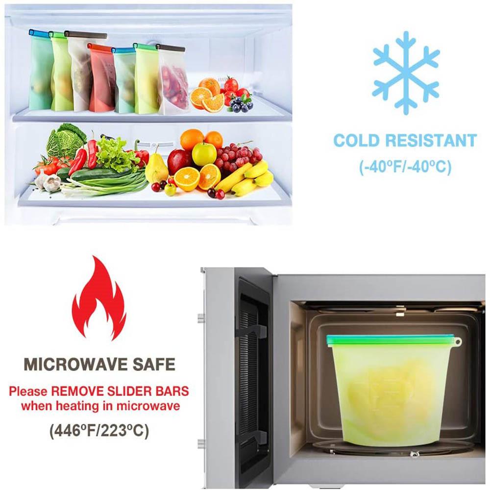 This reusable food bags can withstand temperatures, suitable for microwave oven, conventional oven, dishwasher, refrigerator, freezer, can be washed and boiled