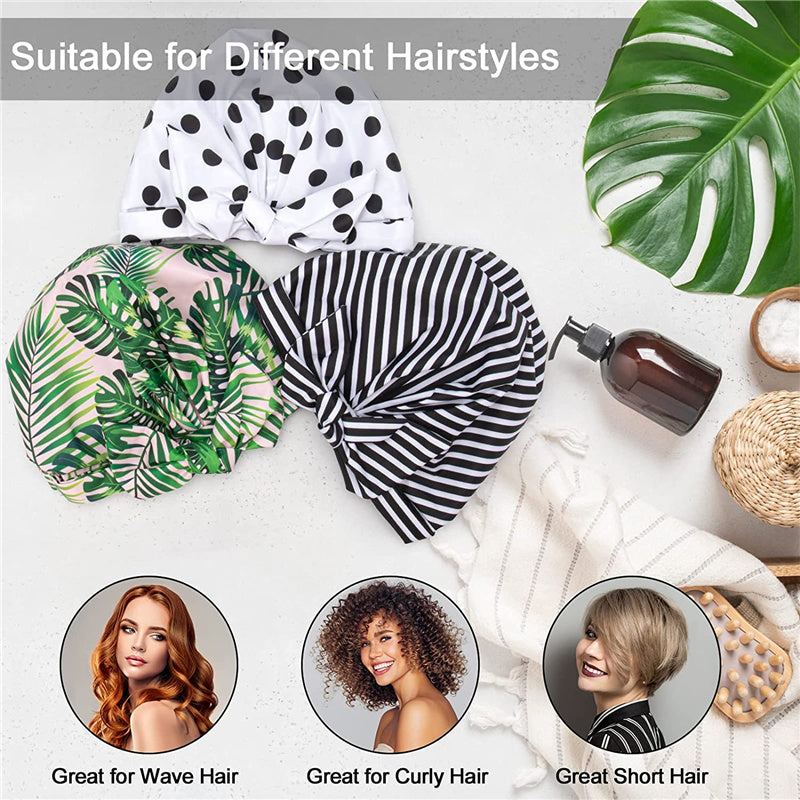 SUITABLE FOR SHOWER USE: Shower hair cap for women protects your hair from water in the shower, just braid your hair into a bun and put it in the hair cap to ensure coverage and not get your hair wet. Using a fashionable hair shower cap is essential in life.
