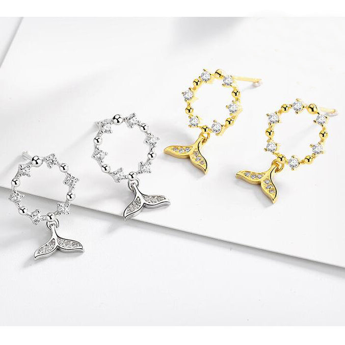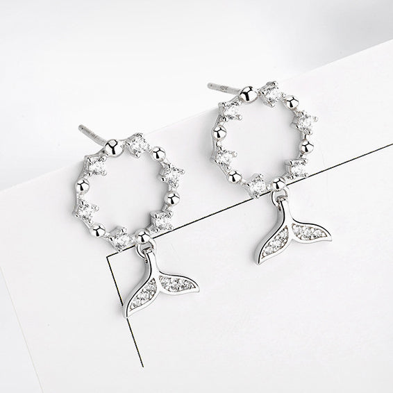 This sparkling rhinestone circle wreath and mermaid fish tail design stud earrings are delicate, dainty and elgant, make you the most gorgeous girl in the crowd.