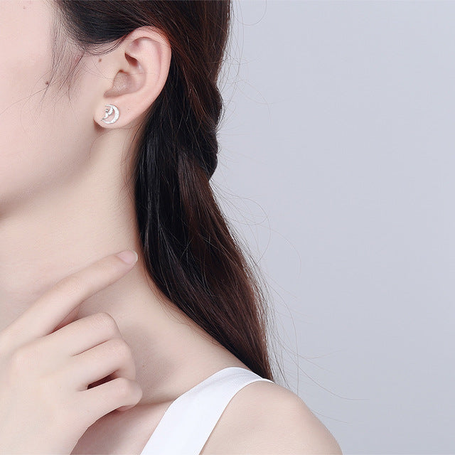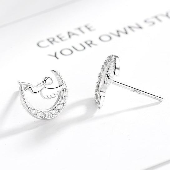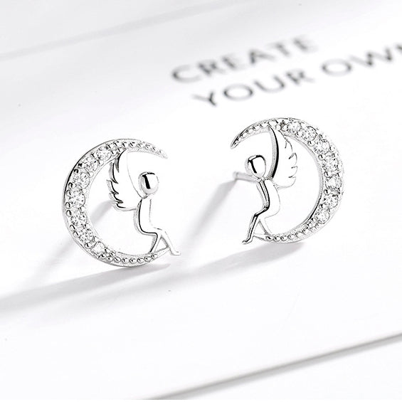 This rhinestone half moon and angel design stud earrings are delicate, dainty and elgant, make you the most gorgeous girl in the crowd.