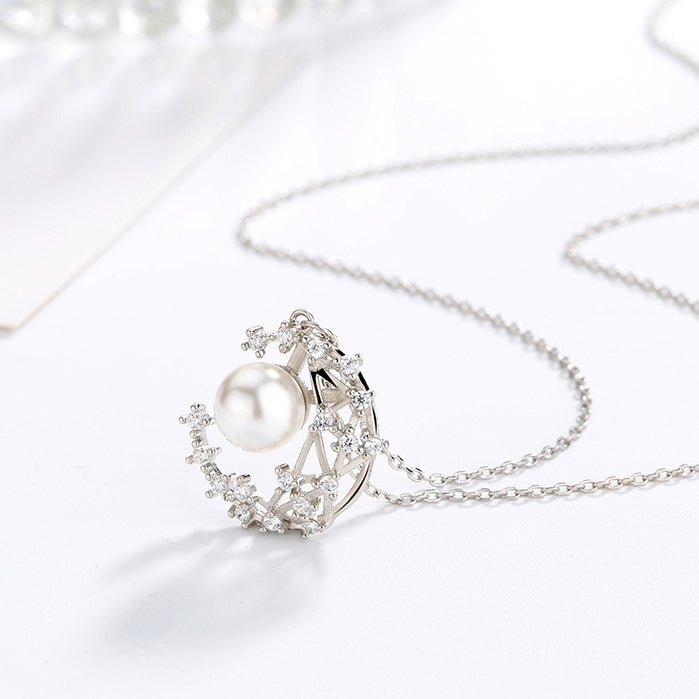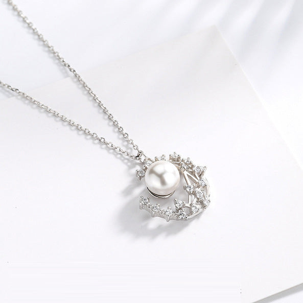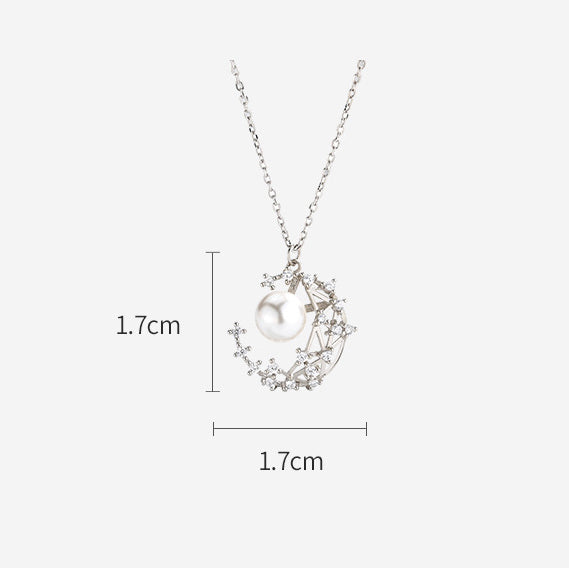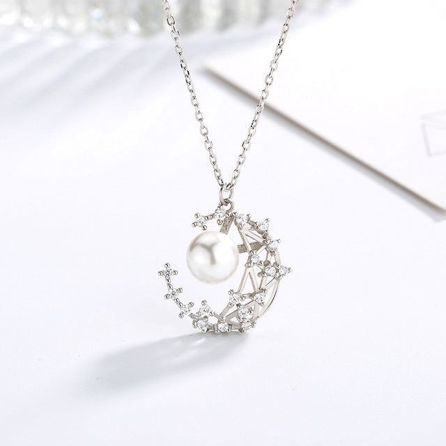 Unique design with rhinestone half moon and white pearl pendant, shiny, dainty and elegant.