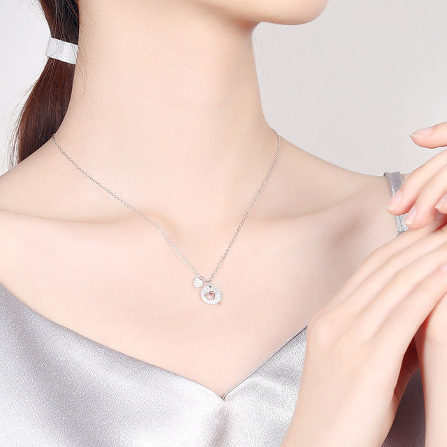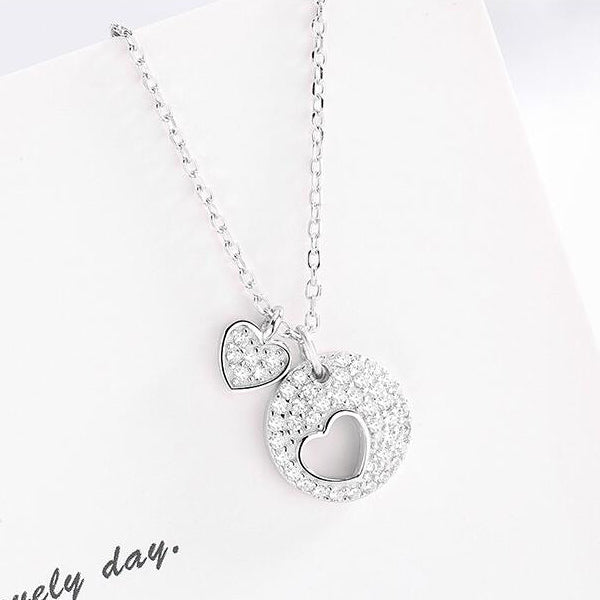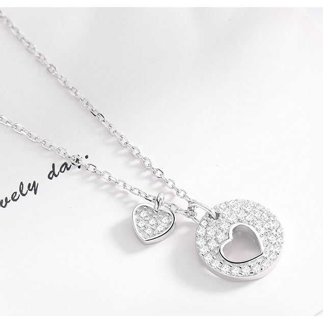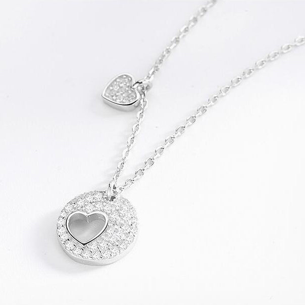 Unique design with rhinestone round plate and heart pendant, shiny, dainty and elegant.