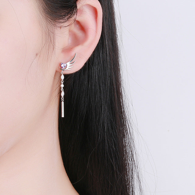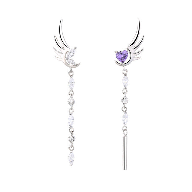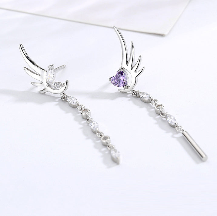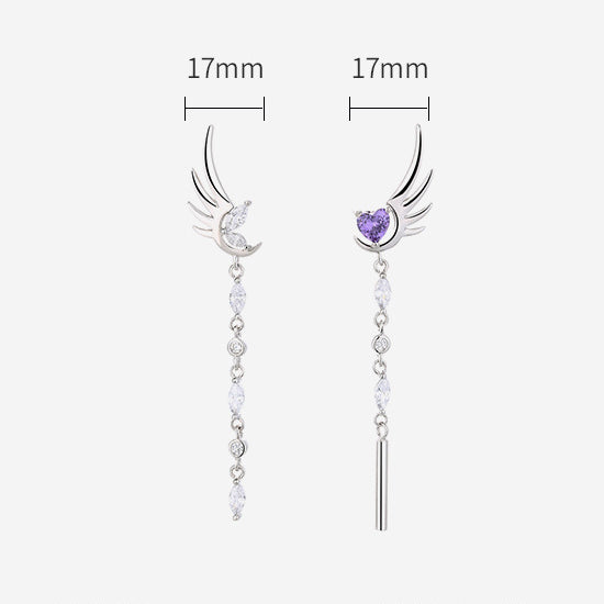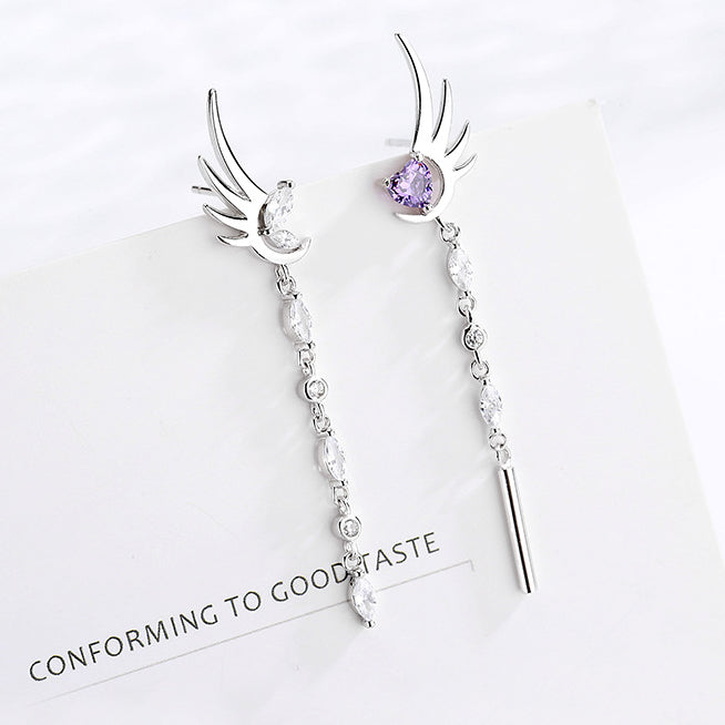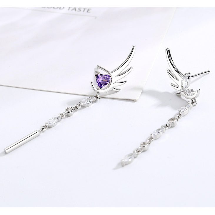 These long tassel rhinestone angel's wing and amethyst heart design stud earrings are delicate, dainty and elgant, make you the most gorgeous girl in the crowd.