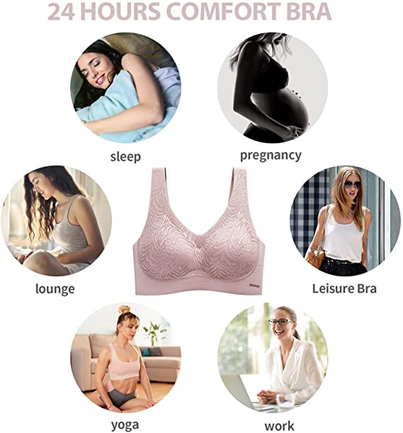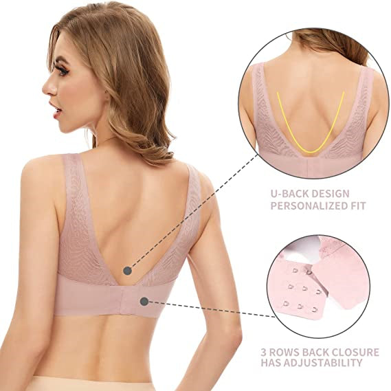Our comfy wirefree bra was designed for comfortable everyday wear and with a deep V lace design. It can be a sleep bra, yoga bra, fitness bra, workout bra, daily bra&everyday bra.