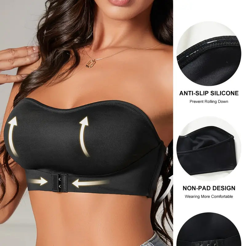 Strapless Design: Enjoy versatile fashion options with our strapless bandeau style, suitable for any outfit. Strapless bandeau bra.