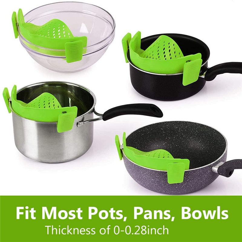 ๐๐ถ๐ ๐๐น๐น ๐ฃ๐ผ๐๐, ๐๐ผ๐๐น๐, ๐ฃ๐ฎ๐ป๐ - Come with 2 specially designed clips, which can fit nearly all ๏ผthickness of 0-0.28inch๏ผround pots, pans, and big and small bowls (including lipped bowls). Please ensure itโs clamped tightly before draining.