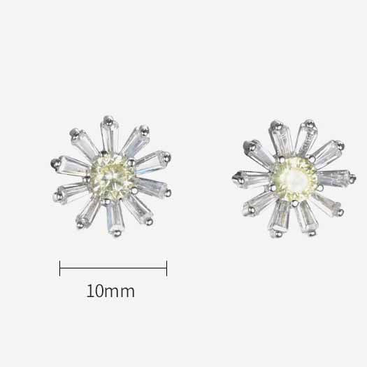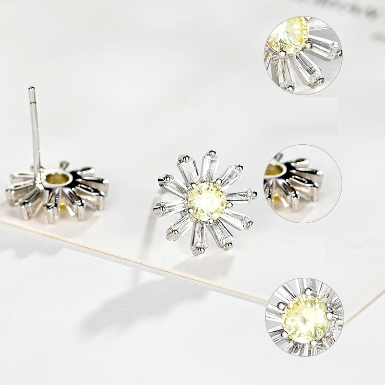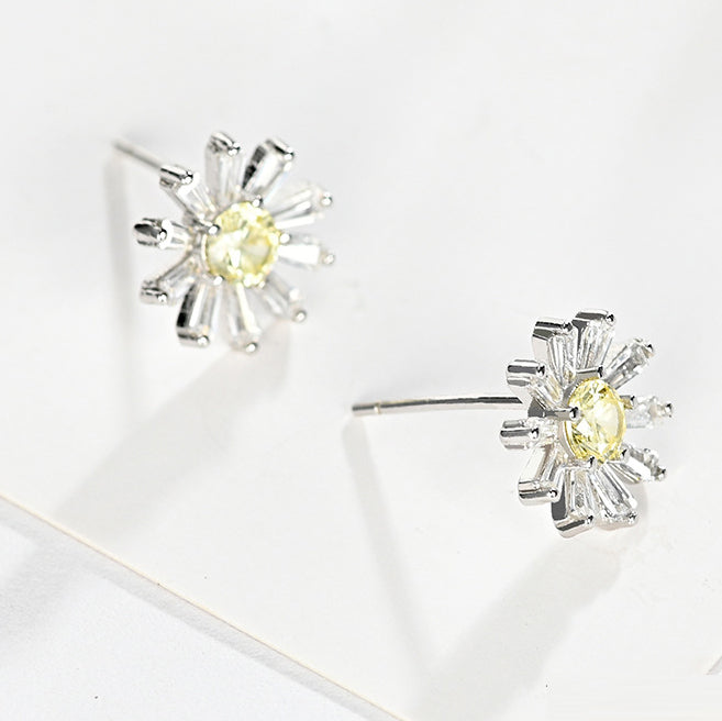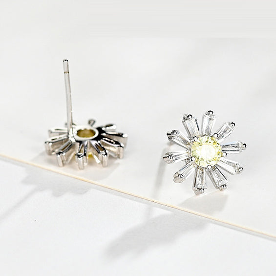 Sparkling Cubic Zirconia Daisy Sunflower S925 Silver Stud Earrings