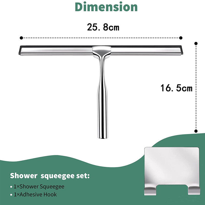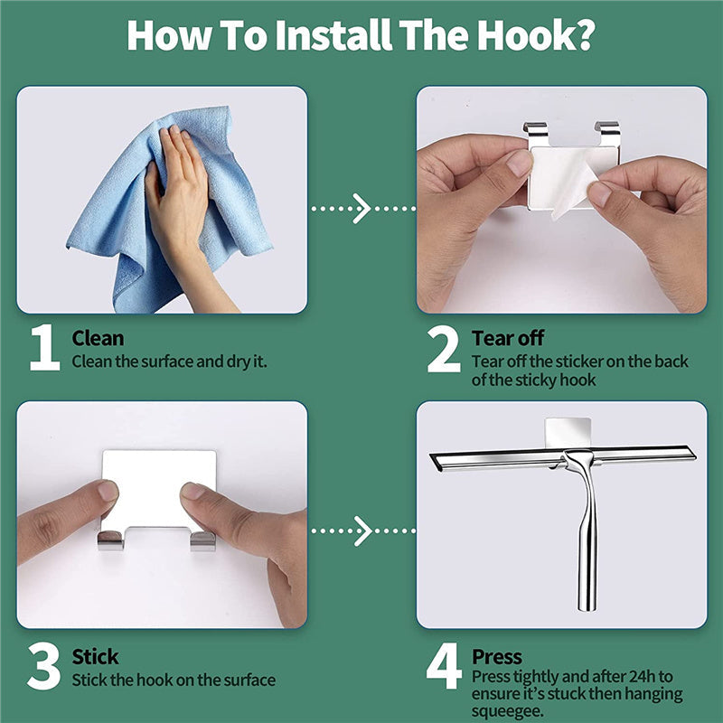 Easy to store- This glass shower cleaner squeegee comes with stick hooks. The users can easily hang the shower glass squeegee on the wall and glass, which saves the spaces for the users.