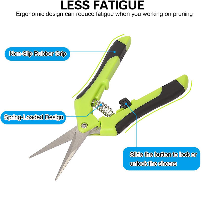 FITS ANY GARDENING WORK - These micro tip pruning snips allow precise cutting and one-handed use, easy access to the narrow position of the plant without damaging the stems and branches of the plant. It can be used for indoor and outdoor picking and pruning of flowers, fruits, vegetables, and bonsai in gardens, backyards, greenhouses, orchards.