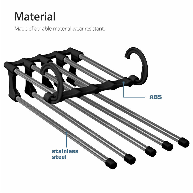 Closet organization: No need to install, ready to use.Our coat rack pants rack hanger are made of durable stainless steel and abs plastic, sturdy while lightweight. They are strong enough even if your pants are oversized or heavy duty and won't be easy to be out of shape.