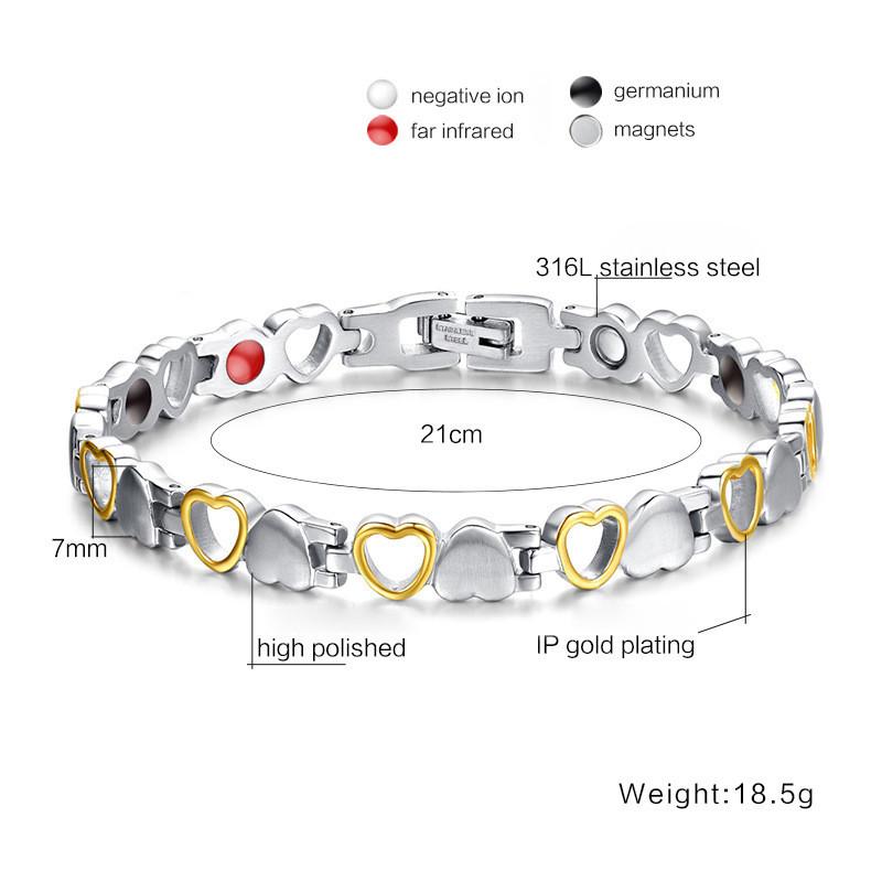 Excellent Anti-Fatigue Heart Hollow Design, fold-cover clasp, Silver and Gold Two Tone vacuum plating, Looks great and fashionable on both Girls & Women.