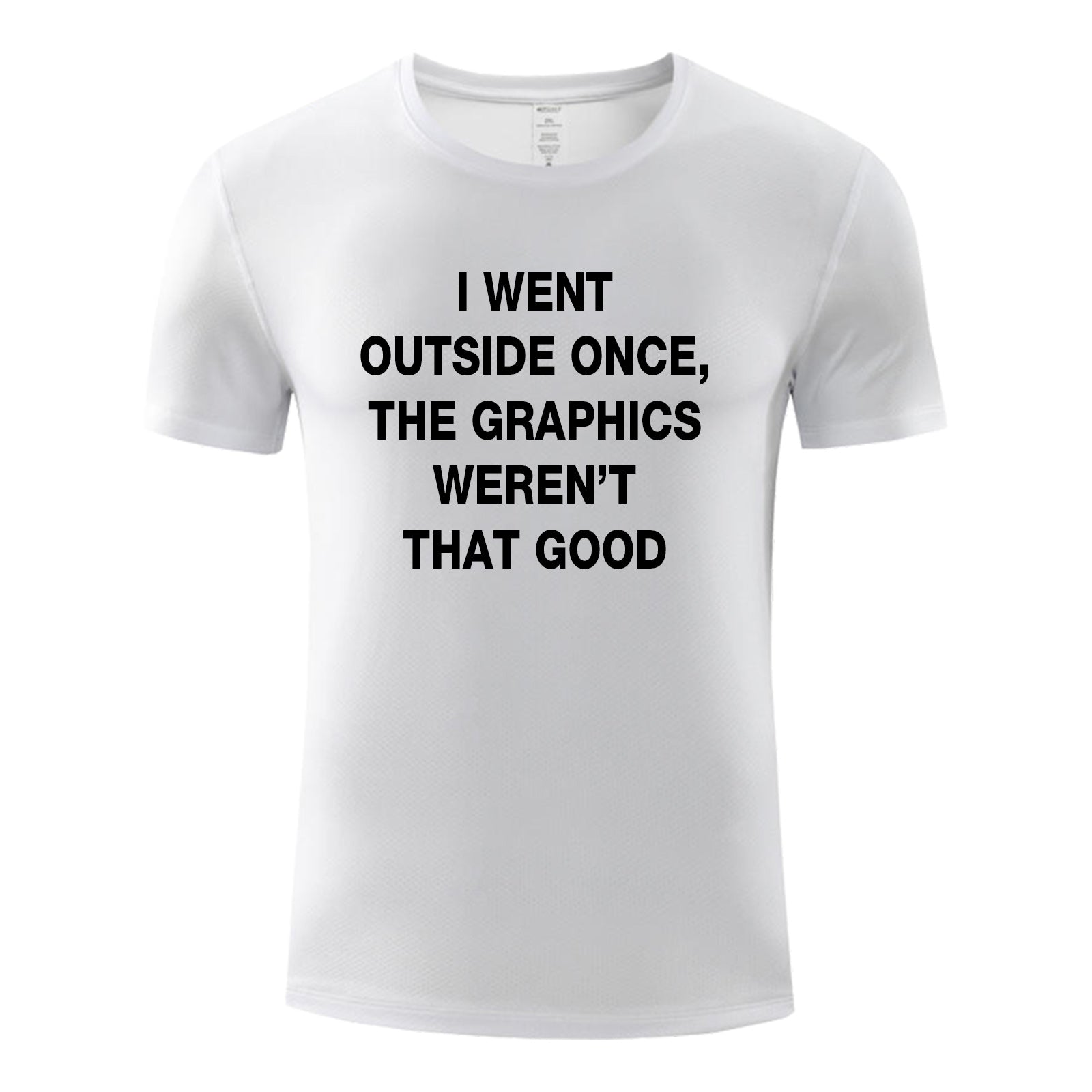 Level up and show your fun side in this humorous I WENT OUTSIDE ONCE,THE GRAPHICS WEREN'T THAT GOOD Summer Tee.