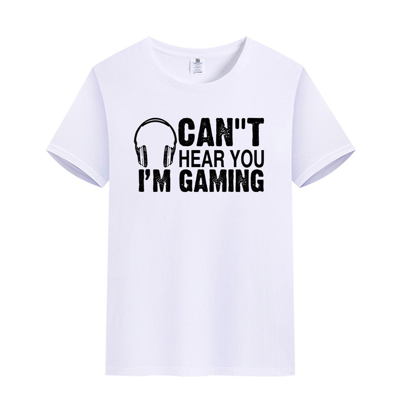 Quality graphic humour novelty tees print Can''t Hear You I'm Gaming  for gamers to express love for vedio games.