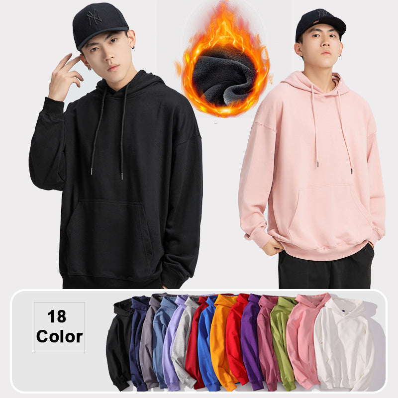 Classic basic plain solid color cotton hoodie, relaxed fit long sleeve.