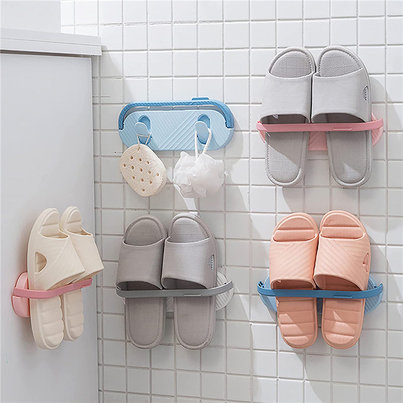 Multi-function- Not just a bathroom slippers rack, but also a multi-functional organizer rack, which can be a hanger or a shelf for many things, such as towel, washcloth, hangers, pot cover, clothes, shoes, high heels, accessories, keychain, etc.